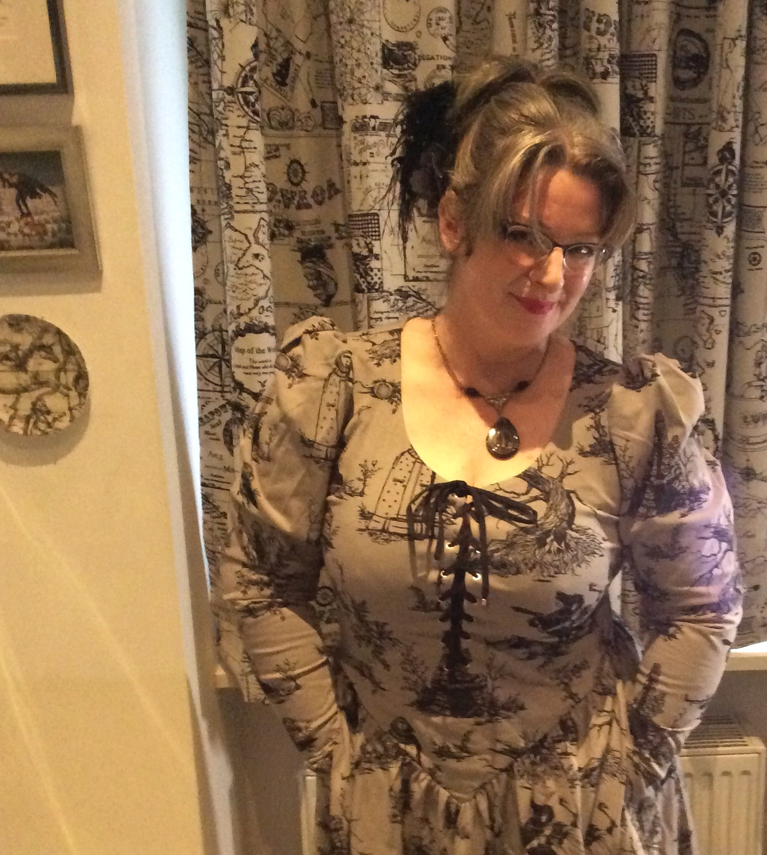 Berlin artist Suzanne Forbes in La Femme en Noir in kitchen Jan 3 2020Hi! I’m 54!
