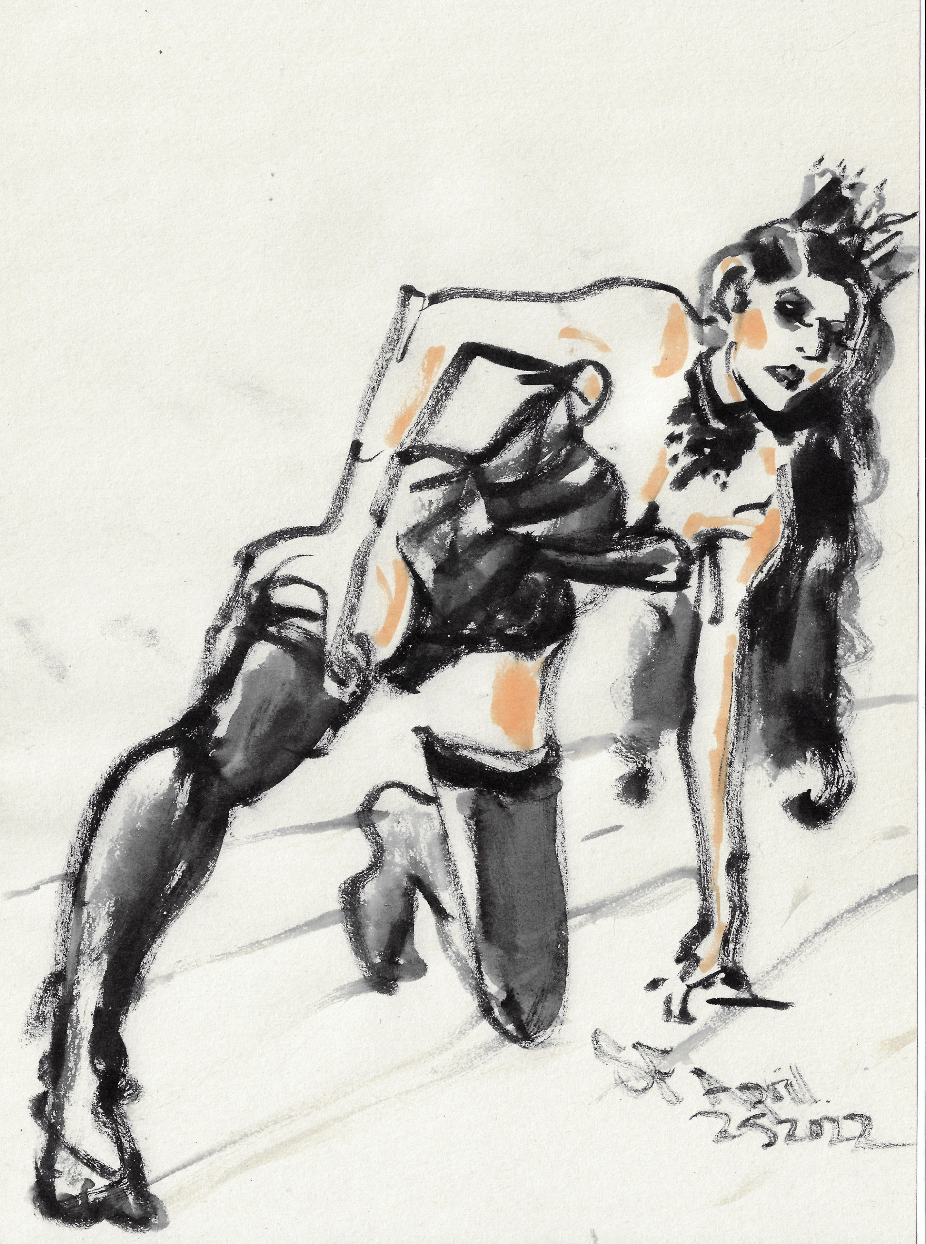 She is a burlesque performer and artist, and she has the most incredible period face and a fantastic aesthetic. She recently modeled for the excellent Berlin life-drawing team Sketcherei, and the session was online as well as IRL, so I was able to join!